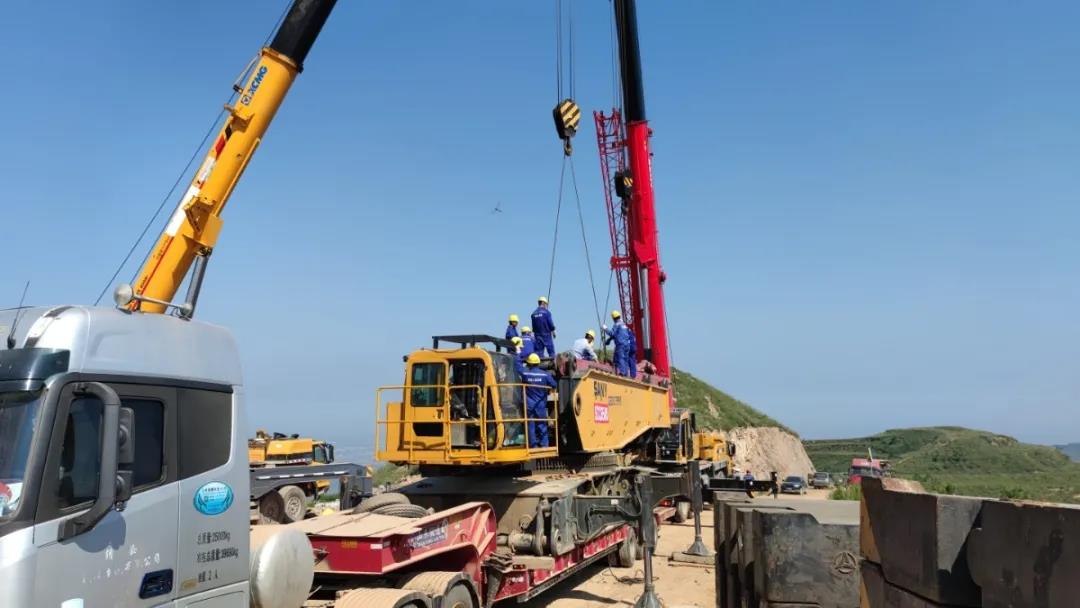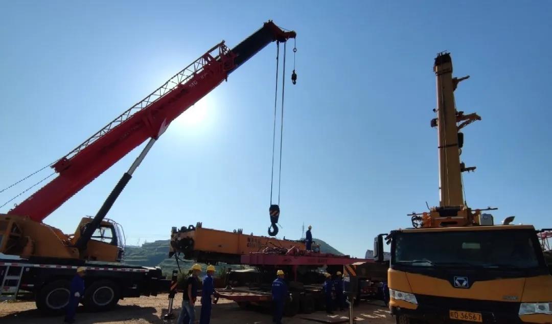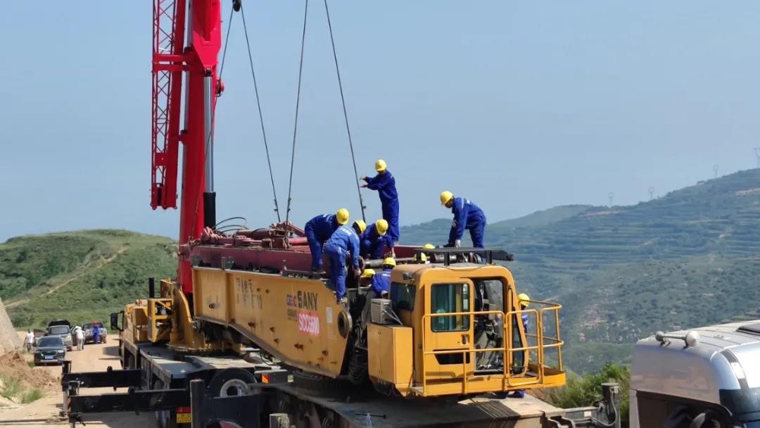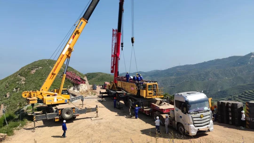 2020年8月27日,在位于山西省侯馬市紫金山的安裝公司風(fēng)電項(xiàng)目,租賃分公司的青年骨干不懼高溫,在大山頂上正式開始組裝主力起重機(jī)械——650噸履帶式起重機(jī)。目前噸位較大的主機(jī)(80噸)、龍門架(20噸)、履帶板(2*58噸)及配重均已成功拖運(yùn)到山頂組裝點(diǎn),整個(gè)組裝及調(diào)試工作預(yù)計(jì)4-5天完成。裝調(diào)完畢后,該履帶式起重機(jī)將為安裝公司第一臺(tái)風(fēng)力發(fā)電機(jī)組裝提供堅(jiān)實(shí)、可靠的吊裝力量!