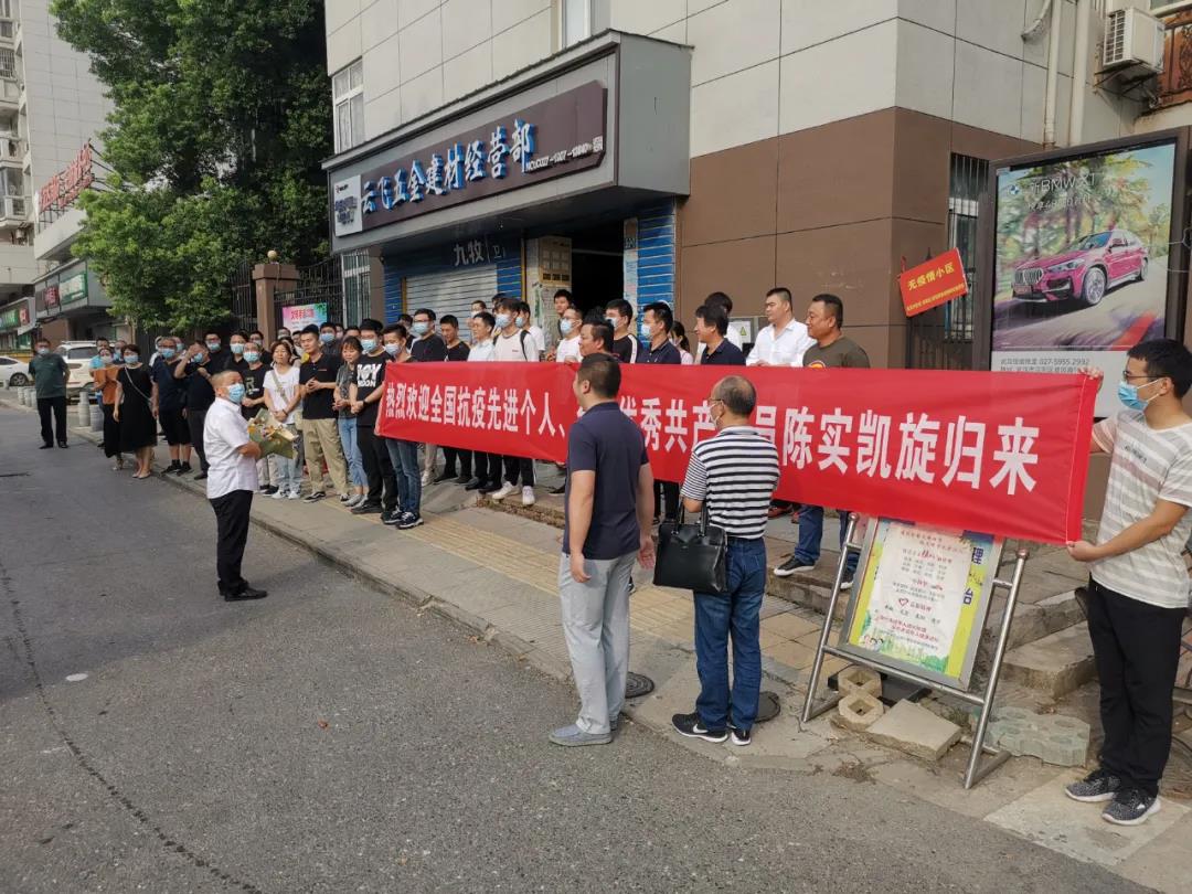 今日清晨,湖北工建安裝公司職工群眾自發來到公司大門口,迎接在全國抗擊新冠肺炎疫情表彰大會上榮獲全國抗擊新冠肺炎疫情先進個人、全國優秀共產黨員的陳實同志載譽凱旋。