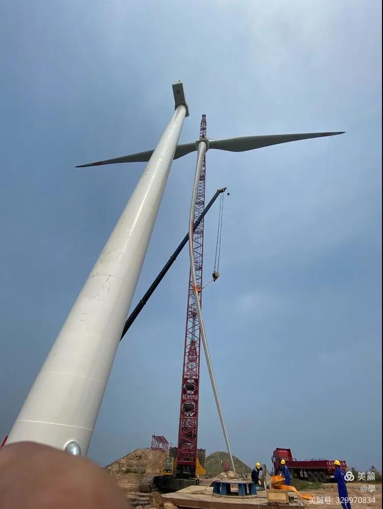 該項目位于山西省侯馬市南部山區,預計安裝20臺“海裝造”H140-2.5MW風力發電機組。該機型塔筒高度達到了90米,屬于超高型塔筒,再加上運輸道路地形崎嶇復雜、機位平臺面積小等不利因素,給現場的安裝工作帶來了一定的挑戰。為了堅決完成好今年并網發電目標。項目部一是針對設備生產緊張、運輸困難等問題成立了專門的應急小組,前后多次與各方溝通,確保大批量物資的提前發運和及時接收。然后結合現場實際情況,通過多次計算分析和校驗后,設計和采用了最優運輸和吊裝方案,保障了安裝過程順利并在安裝過程中發揚攻堅克難的精神,解決了技術障礙和難點問題。