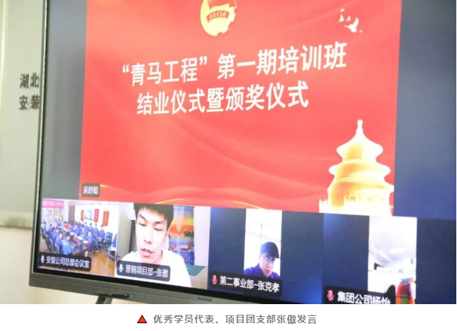 6月10日,安裝公司團委舉辦“青馬工程”第一期培訓班結業儀式。公司黨委副書記、工會主席王國新,集團團委書記楊怡,公司人力資源部部長陳元清出席儀式。儀式由公司團委書記黃愷主持,第一期“青馬工程”學員通過線上線下相結合的方式參加儀式。