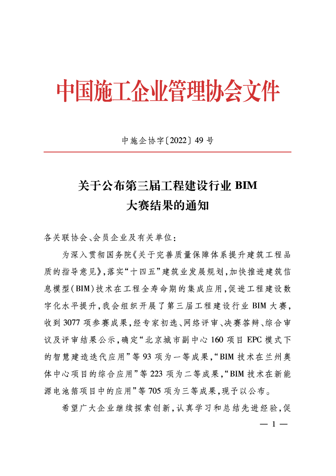 近日,中國施工企業管理協會公布了第三屆工程建設行業BIM大賽結果,由安裝公司承建的《湖北工建機電科技產業園項目》喜獲大賽二等成果獎。