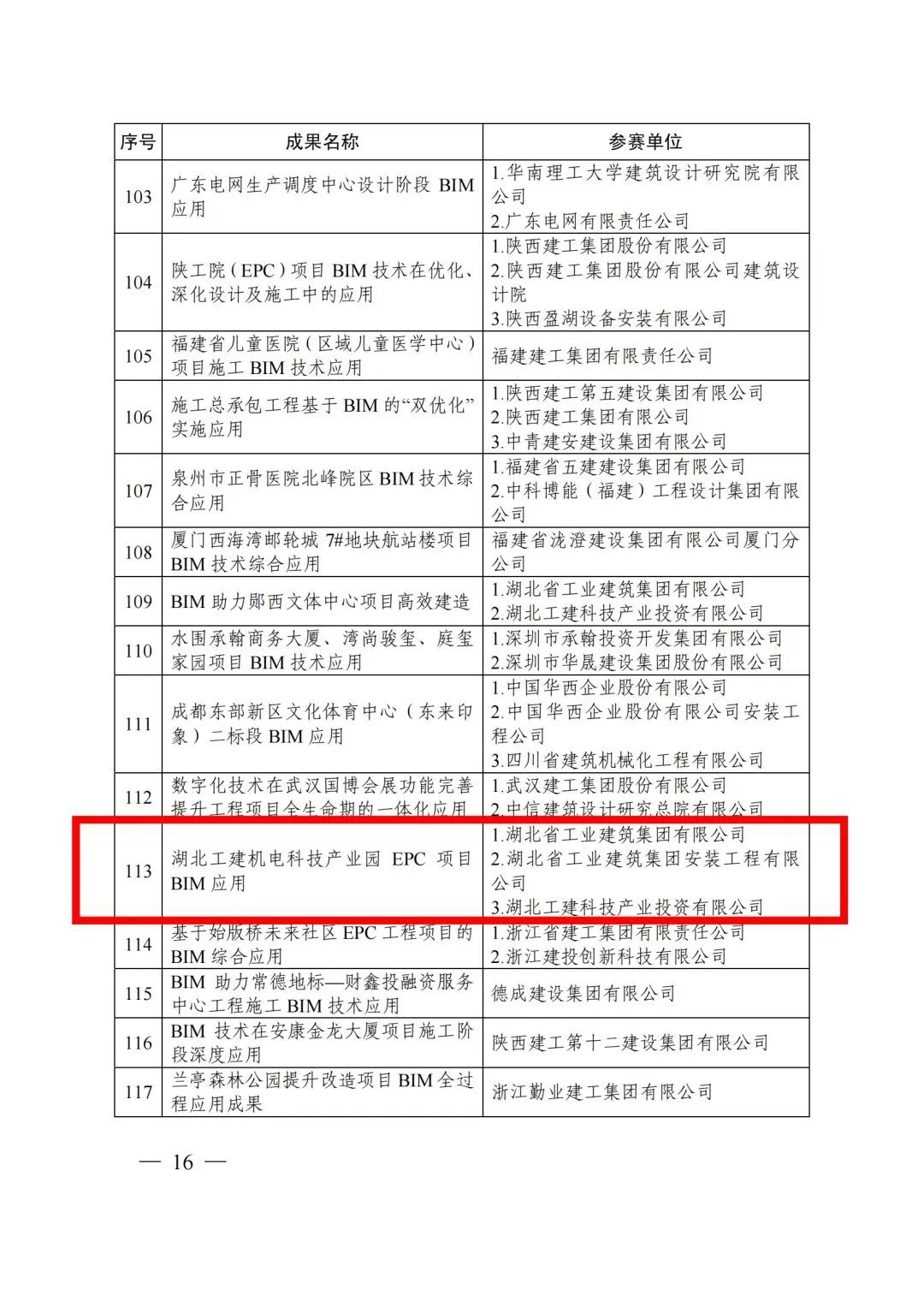 湖北工建機電科技產業園項目榮獲“第三屆工程建設行業BIM大賽”二等成果獎"