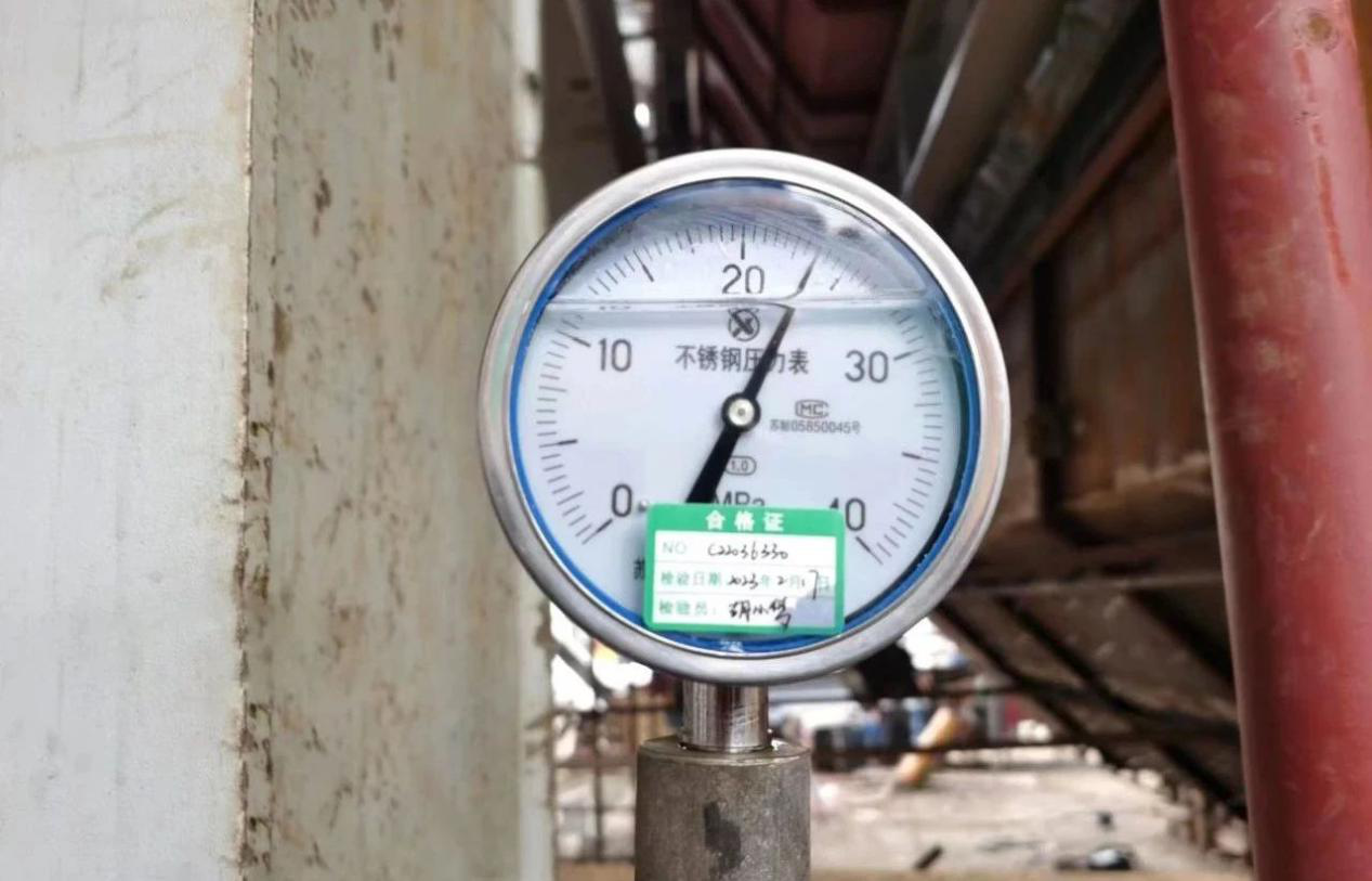 本次水壓試驗達到試驗壓力23.75mpa,穩壓20分鐘無壓降。水壓試驗過程中,現場檢查小組對系統進行3次全面檢查,各受壓元件金屬管壁和所有焊縫無水痕、無泄漏、無變形,各項技術指標均達到了設計要求,水壓試驗圓滿成功。