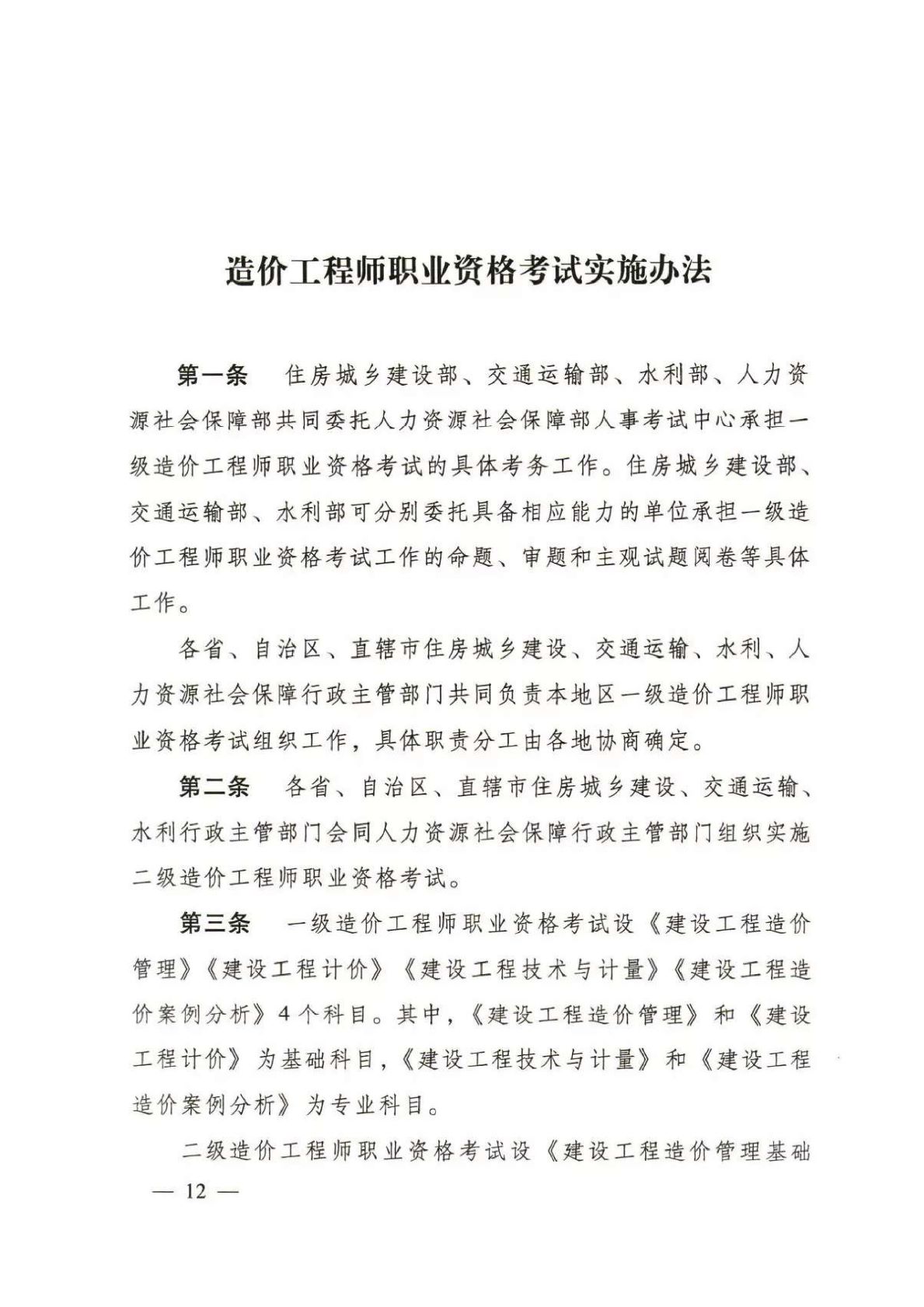 住房城鄉(xiāng)建部 交通運(yùn)輸部 水利部 人力資源社會(huì)保障部關(guān)于印發(fā)《造價(jià)工程師職業(yè)資格制度規(guī)定》《造價(jià)工程師職業(yè)資格考試實(shí)施辦法》的通知