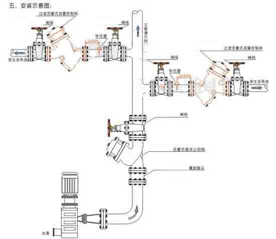 減壓緊急關(guān)閉閥用于生活與消防系統(tǒng)共用的供水系統(tǒng)中,當(dāng)消防系統(tǒng)開啟時壓力升高,減壓緊急關(guān)閉閥關(guān)閉、切斷生活用水,確保消防用水。