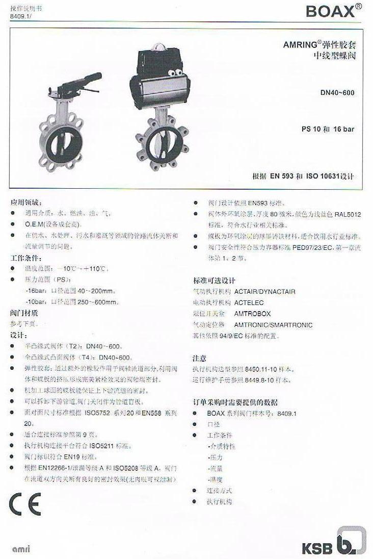 凱士比KSB閥門:凱士比KSB蝶閥型號BOA-X應(yīng)用領(lǐng)域:
