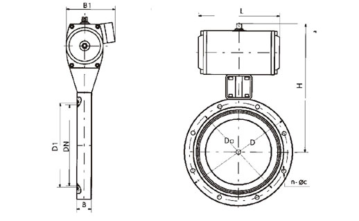 GIQ型-氣動(dòng)高真空蝶閥主要零件材料 閥體、閥蓋、閥桿:碳鋼或不銹鋼 密封件:丁腈橡膠、氟橡膠。 GIQ型-氣動(dòng)高真空蝶閥外形及連接尺寸mmJB919